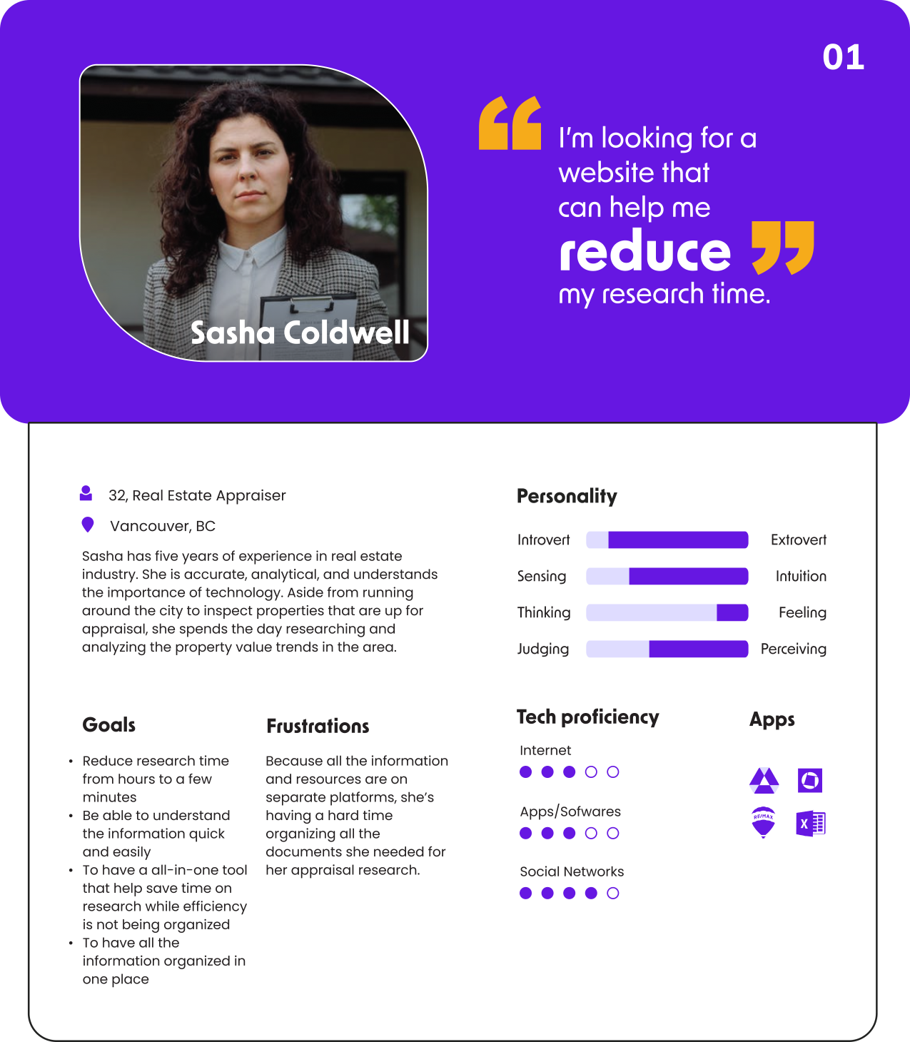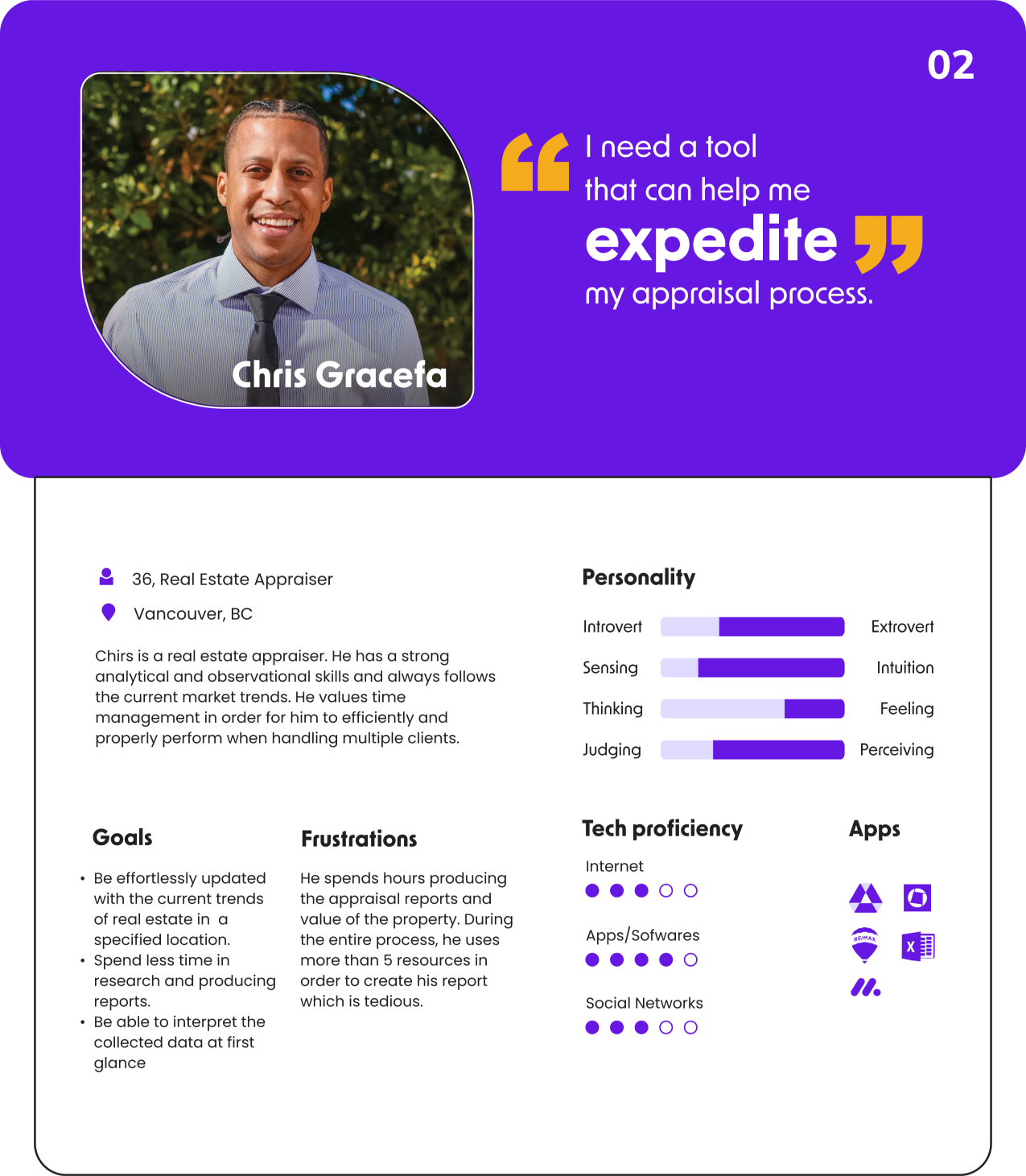 Based on the data gathered during our research, we developed personas to better understand our target users' goals, motivations, and challenges, which helped us better empathize with them and create design solutions that meet their needs.